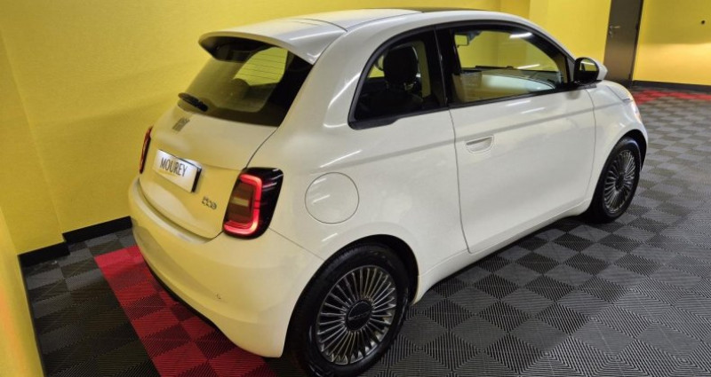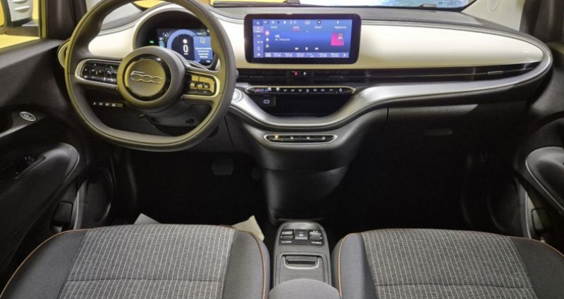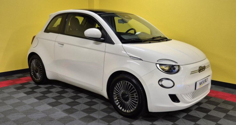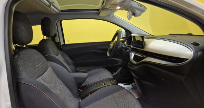 ======= options ======= sellerie tissu seaqual noir gris toit vitré panoramique ======= equipements de serie ======= abs antiblocage des roues avec répartiteur de freinage ebd appel d'urgence - ecall capteur de pluie climatisation automatique détails chromés : logo 500 sur calandre et logo fiat sur hayon détecteur de fatigue détecteur de luminosité direction assistée esp - contrôle électronique de stabilité avec hill holder feux diurnes à led frein à main électrique freinage d urgence autonome intégration apple carplay et android auto sans fil jantes alliage 16'' icône lève-vitres avant électriques limiteur de vitesse intelligent pare-chocs couleur carrosserie peinture ice white planche de bord couleur carrosserie poignées de portes dissimulées reconnaissance des panneaux de signalisation régulateur de vitesse rétroviseurs extérieurs à réglage électrique rétroviseurs extérieurs couleur carrosserie sélecteur de mode de conduite siège conducteur à réglage manuel 4 positions système d'alerte pour piétons système d'avertissement de franchissement de ligne avec correction système uconnect 10,25 dab avec navigation volant avec commandes soft-touch volant réglable en hauteur et en profondeur nb. vitesses : 1 conso mixte : l/100